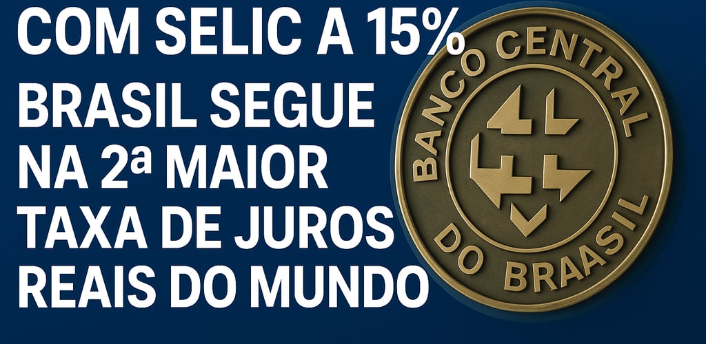 Com Selic mantida em 15%, Brasil permanece na 2ª posição global de juros reais, atrás da Turquia. Veja o ranking e o impacto nos investimentos.